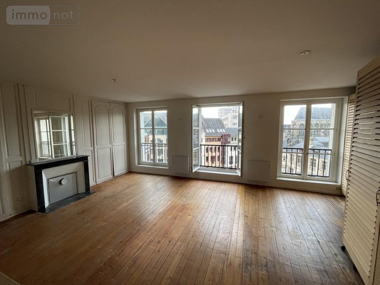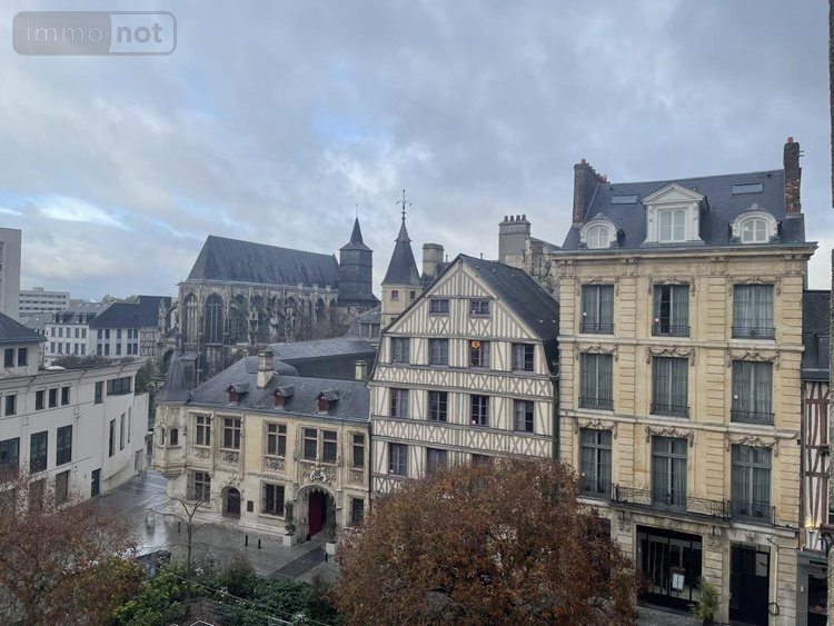 Place de la Pucelle, appartement au troisième étage, composé d'une entrée, chambre sur cour avec sa salle de douche, placard et wc, une deuxième salle de douche, wc, chambre, salon TV et un séjour avec cuisine ouverte.