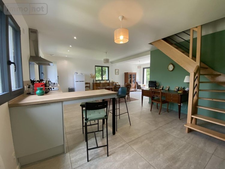 - RDC : Entrée avec placard, wc, buanderie-chaufferie, vaste salle à manger-salon avec cuisine ouverte et accès direct à la terrasse,