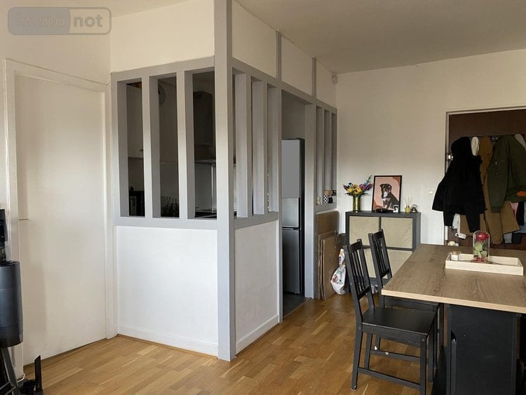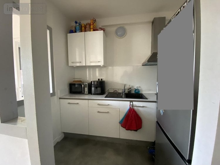 Séjour, cuisine semi-ouverte et aménagée (rangements, plaque de cuisson, hotte), chambre, salle de bains, wc,
