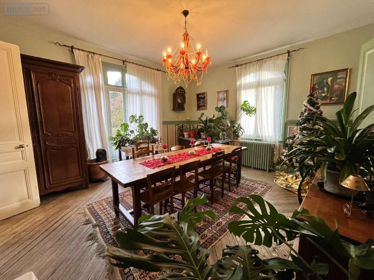Grande demeure de 291m2 construit en 1909 sur une terrain arboré de 3183m2. Le bien rempli du charme de l'ancien, la maison vous offre les magnifiques volumes suivants : - Entrée - Salon avec poêle à bois - Cuisine séparé - Salle à manger - 7 chambres - un bureau pouvant être une 8ème chambre - Plusieurs salle d'eau - Plusieurs WC - Sous-sol complet Les points forts : - Une chaudière à pellet installée en 2022 - Maison calme et isolée - Train accessible rapidement - Charme de l'ancien. Maison à découvrir.