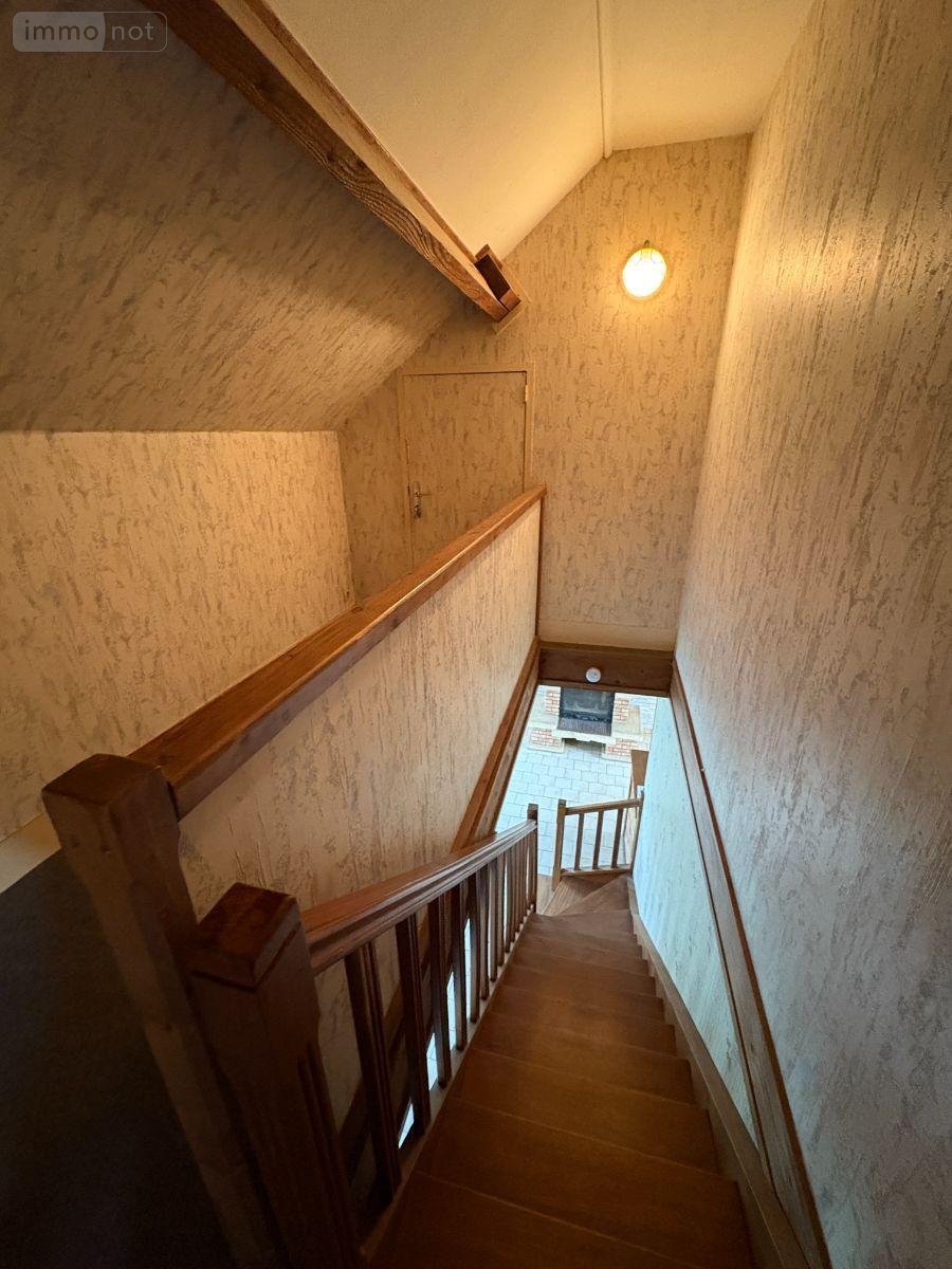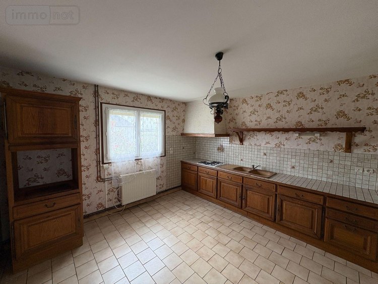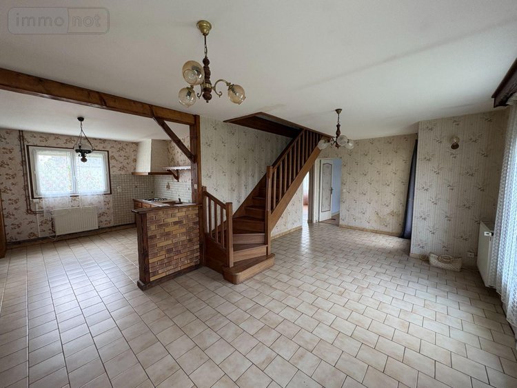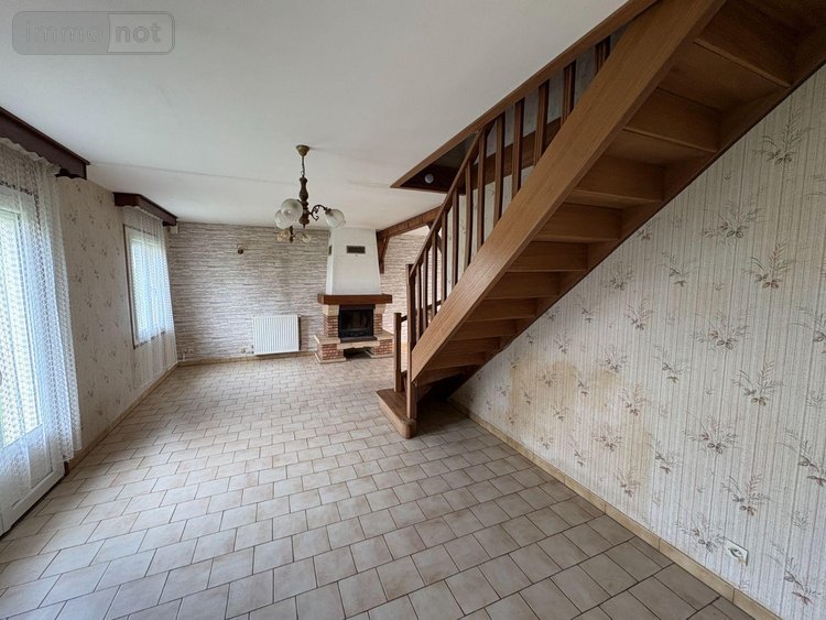 Pavillon individuel comprenant au rez-de-chaussée : une entrée ouverte sur un séjour-salon équipé d'une cheminée avec insert, ouvert sur une cuisine aménagée, non équipée, un dégagement, deux chambres, une salle d'eau avec WC, au premier étage : un bureau, une chambre, un dégagement, un grenier, chauffage central au fioul, garage, petite dépendance.
