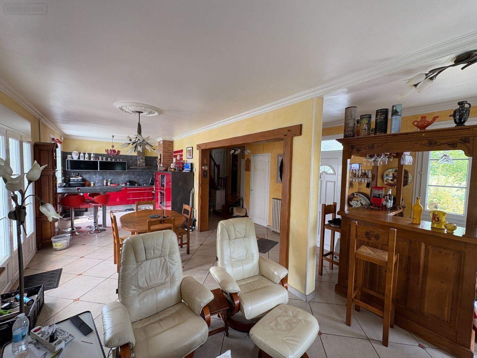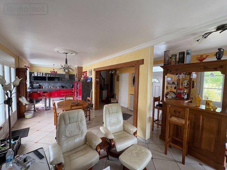Au rez-de-chaussée : une cuisine aménagée et équipée ouverte sur le séjour, un dégagement, deux chambres, une salle d'eau, un WC avec lave-mains.