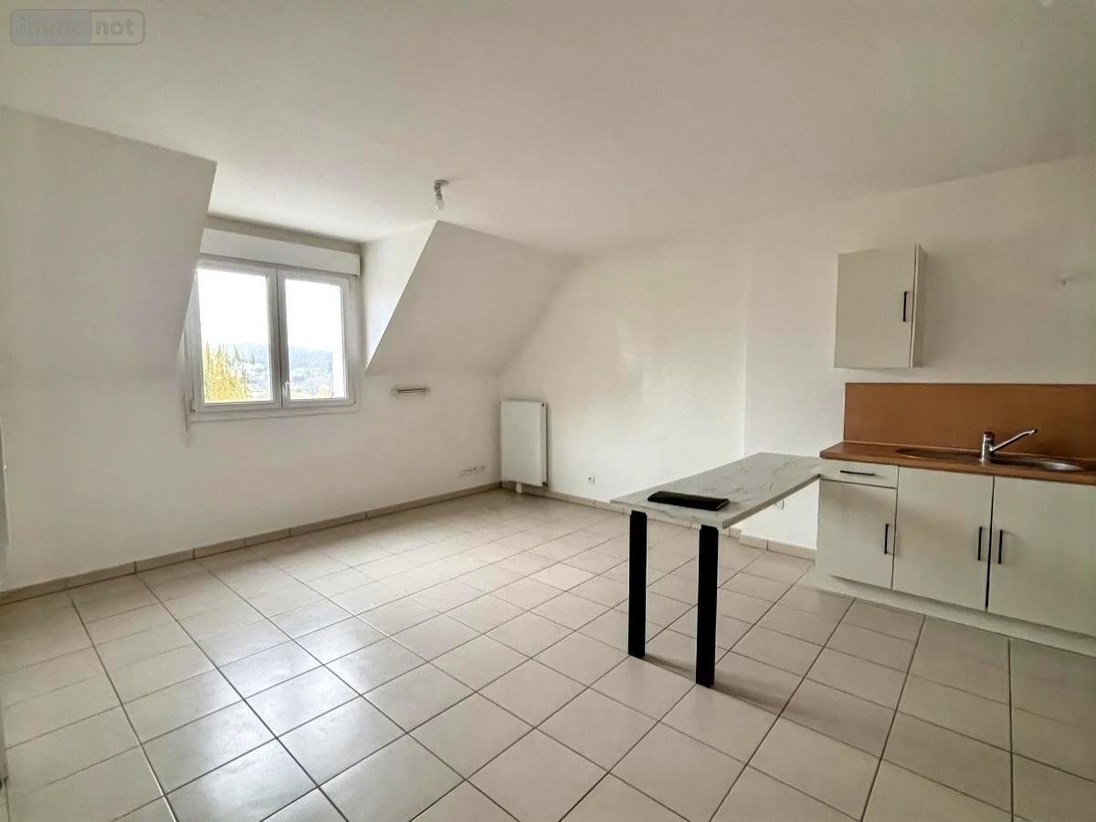 Une entrée avec placard, une cuisine aménagée ouverte sur séjour, une chambre et une salle de douche avec wc.