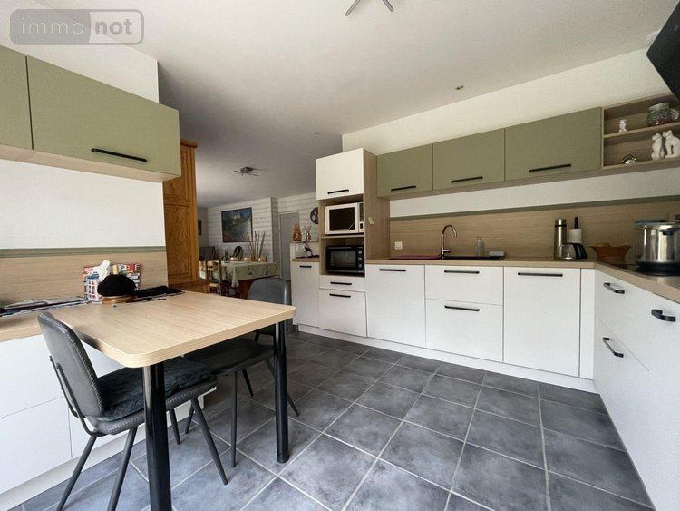 L'intérieur s'ouvre sur une entrée donnant sur un séjour/salon lumineux et convivial, idéal pour les moments en famille ou entre amis, d'un bureau, et d'une cuisine récente moderne, aménagée et entièrement équipée donnant sur la terrasse.