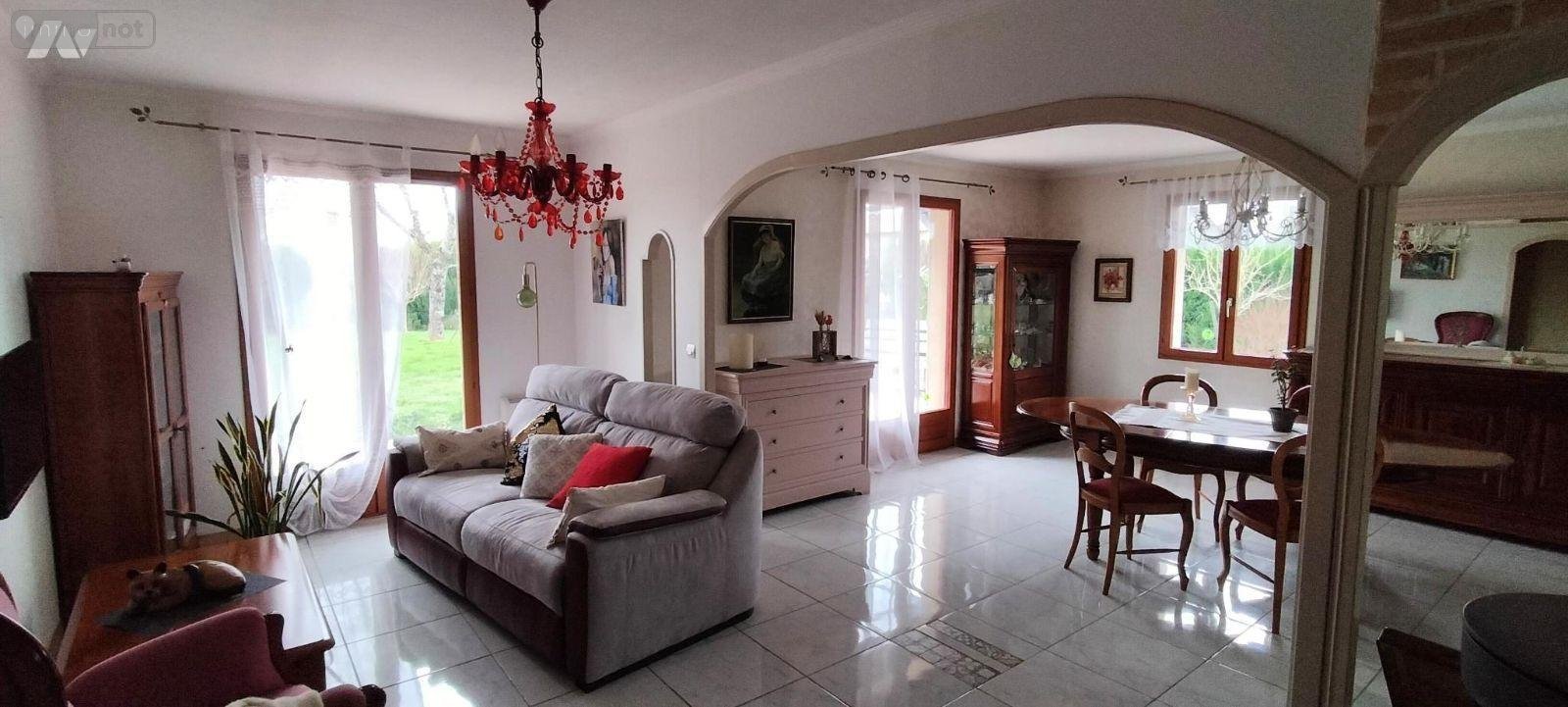 -Entrée, wc, cuisine aménagée et équipée 15m² ouverte sur séjour-salle à manger 35m² ave poêle à bois récent (50m² possibles), bureau, 3 chambres de 10.5 à 13m², SDB + douche et wc, bureau, arrière cuisine, buanderie, cave, terrasse. Joli terrain clos et arboré sur 2598m² avec un préau pour un véhicule, un cabanon et terrasse. Ouvertures double vitrage, combles isolés, tout à l'égout. BELLE OPPORTUNITE!!!
