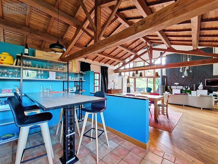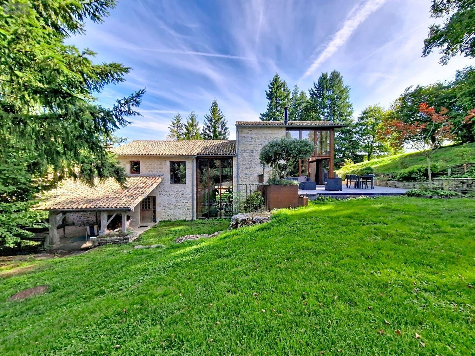 Pour les amoureux de la nature ! Nichée au c?ur d'un environnement privilégié, calme et verdoyant sans vis-à vis, entourée de 6ha vallonnés traversés par un cours d'eau (idéal pour des chevaux°, magnifique propriété atypique alliant l'ancien et le moderne et offrant 327m² habitables. Au niveau principal, belle entrée donnant sur un superbe espace de vie de 115m² baigné de lumière comprenant cuisine équipée séjour et salon avec poêle et accès terrasse, arrière cuisine, une chambre de 20m² une grande salle de bains et un wc sont dans la continuité de ce niveau de plain-pied.