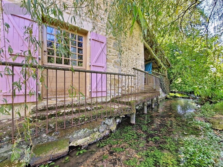 En rez de jardin se trouve un hall indépendant desservant la partie ancienne ayant conservé ses éléments d'origine (dallages, four à pain?) et offrant deux chambres dont une de 27m² avec salle d'eau et dressing , wc, une pièce de 20m² avec poêle et accès rivière à usage de chambre et bureau. Pour finir deux grandes réserves, buanderie, chaufferie (pompe à chaleur eau/eau) et une cave. Terrasse couverte, grange de 40m², écuries et deux cabanons en bois viennent compléter ce bel ensemble. PRODUIT RARE ! TRES BELLE OPPORTUNITE