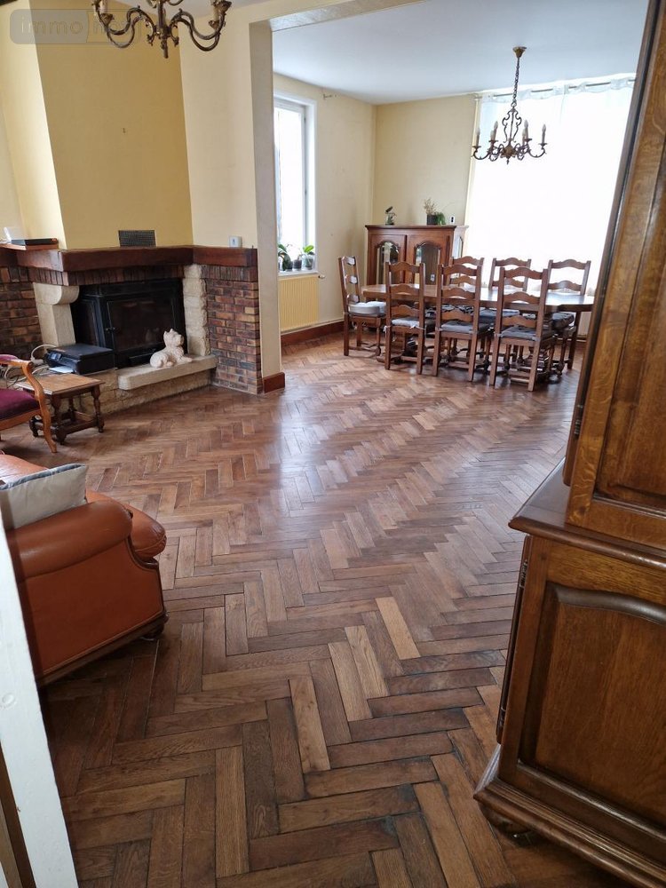 - Au rez-de-chaussée : couloir, cuisine, salle à manger-salon avec cheminée, sas avec placards, WC, salle de bains, chaufferie avec pompe à chaleur et ballon thermodynamique, raccordée au tout à l'égout, atelier, double garage construit en briques et parpaings avec grenier, cave voûtée ;