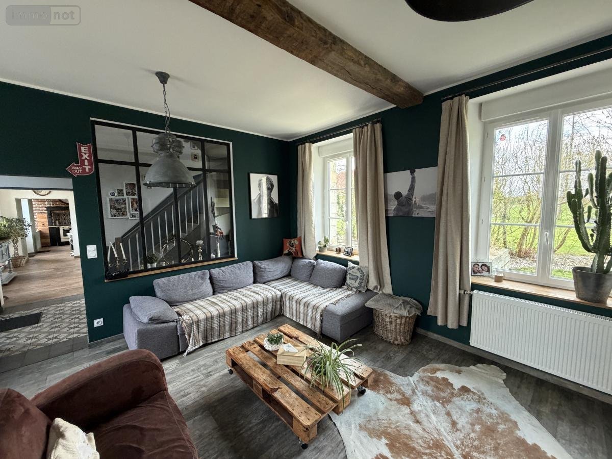Située à Vauchelles-lès-Authie, dans un environnement paisible, derrière sa façade en pierres blanches, cette demeure de charme datant des années 1780 incarne à la perfection l'alliance entre patrimoine, raffinement et confort moderne.