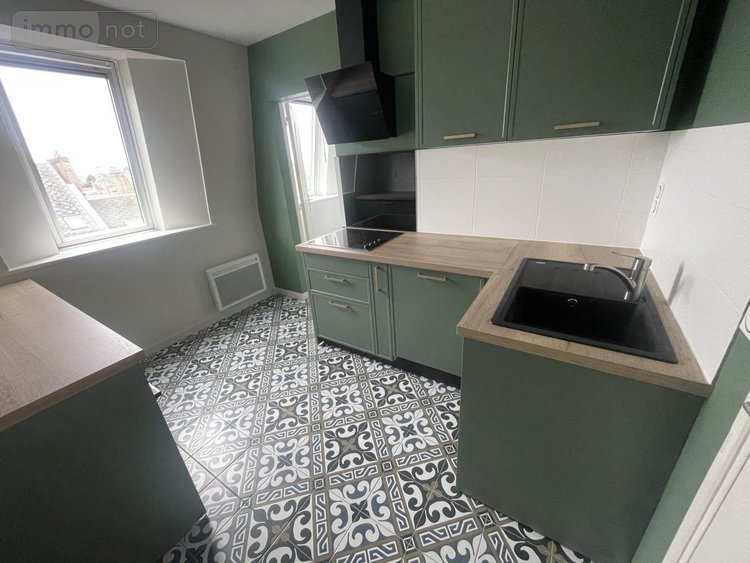 Entrée avec placard, grand séjour, cuisine entièrement rénové aménagée et équipée avec arrière cuisine (réfrigérateur-congélateur, plaque, hotte, four), dégagement avec placard, deux chambres, salle d'eau, WC séparé