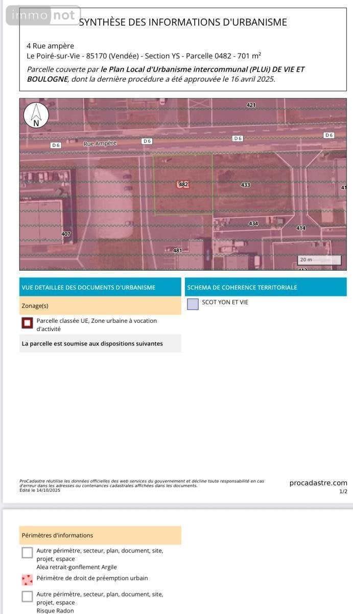 LE POIRE SUR VIE Terrain de 701m² situé en zone artisanale,