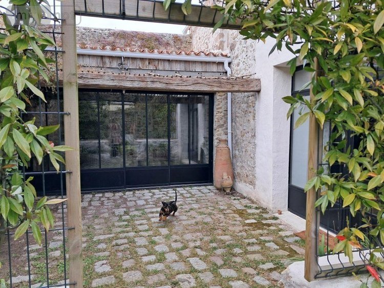BOUIN - Une maison comprenant au rez-de-chaussée une entrée-verrière, un salon, une cuisine aménagée et équipée, une arrière-cuisine, un patio, WC, local technique, cellier-lingerie avec douche, chambre, et à l'étage, coin-détente, bureau, dégagement, salle de bains, dégagement avec dressing, 2 chambres, WC, chambre parentale avec salle de bains, Dépendances : Garage avec local technique, Piscine, Abri de jardin, Serre, Terrain attenant.
