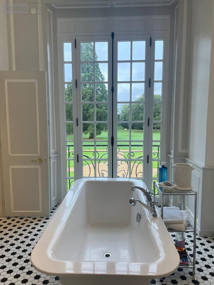 A. Château élevé sur terre-plein, consistant en une grande construction, avec deux ailes parallèles, l'une à l'est, l'autre à l'ouest sur cave. I. La portion principale comprenant : - Au rez-de-chaussée : * dans la partie centrale, un vestibule d'entrée - galerie, donnant sur un hall avec escalier, une salle à manger, un salon - salle de télévision, un deuxième salon, une pièce - cuisine - débarras, un bureau Toutes ces pièces éclairées notamment par des fenêtres au midi sur le parc * dans son aile "Est", une salle de service - dégagement, desservant : une cuisine aménagée et équipée, une lingerie, une salle de cinéma, un bureau, une entrée donnant elle-même sur un dégagement desservant une salle de sport, une salle de massage, salle d'eau et hammam, et local technique. * dans son aile "Ouest" , un dégagement, couloir avec un local technique - informatique, desservant une grande salle précédemment utilisée comme salle de réunion, au sous-sol, une cave enterrée, local technique et une autre pièce enterrée. Un appartement de service (loge du gardien) comprenant en rez-de-chaussée, séjour, salon, cuisine, WC invités et permettant l'accès à l'étage comprenant trois chambres, salle de bains, avec lavabo, WC et halle d'escalier. - Au premier étage : dans la partie centrale, une chambre avec une salle de bains, WC, lavabo donnant accès au grenier et comprenant le local technique informatique, une chambre avec dressing, une salle de bains, WC, lavabo et deux autres chambres séparées par une salle de bains commune, dégagement - palier d'escalier, menant à une grande pièce sous le plafond mansardé de l'aile ouest - Au deuxième étage : dans la partie centrale : deux chambres avec chacune une salle de bains, wc, lavabo et deux autres chambres séparées par une salle de bains commune, dégagement - palier d'escalier. Il- Grande cour avec jardin d'agrément entre ces trois corps de bâtiment, à laquelle on accède par une avenue droite gazonnée partant de l'entrée principale de la propriété. Ill- Château d'eau autrefois alimenté par un bélier hydraulique et maintenant utilité dans le cadre du micro forage nouvellement installé qui fournit toute l'eau pour la maison et l'arrosage des jardins. A côté du château se trouvent des écuries en accès direct aux paddocks et carrière. Le prolongement de l'aile est, ouvrant sur la cour intérieure comprenant un grand porche, des remises, une ancienne écurie, un grenier courant sur toute la longueur de l'aile. Dans cette zone, les jardins paysagers supportent une piscine et un jacuzzi, avec des chemins menant sur une ancienne chapelle convertie comprenant une entrée, une grande salle et une salle d'eau Le parc se compose de bois, prairie, cours, source, cresson, canaux et étang.