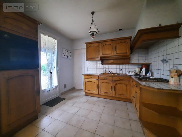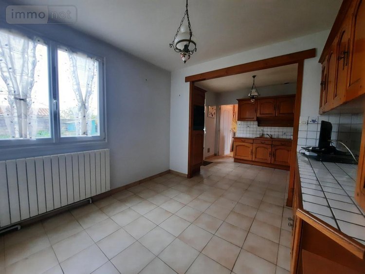 Maison de plain pied comprenant: une pièce de vie, une cuisine aménagée et équipée avec un espace repas, un dégagement, 3 chambres, une salle d'eau, un WC, un cellier.