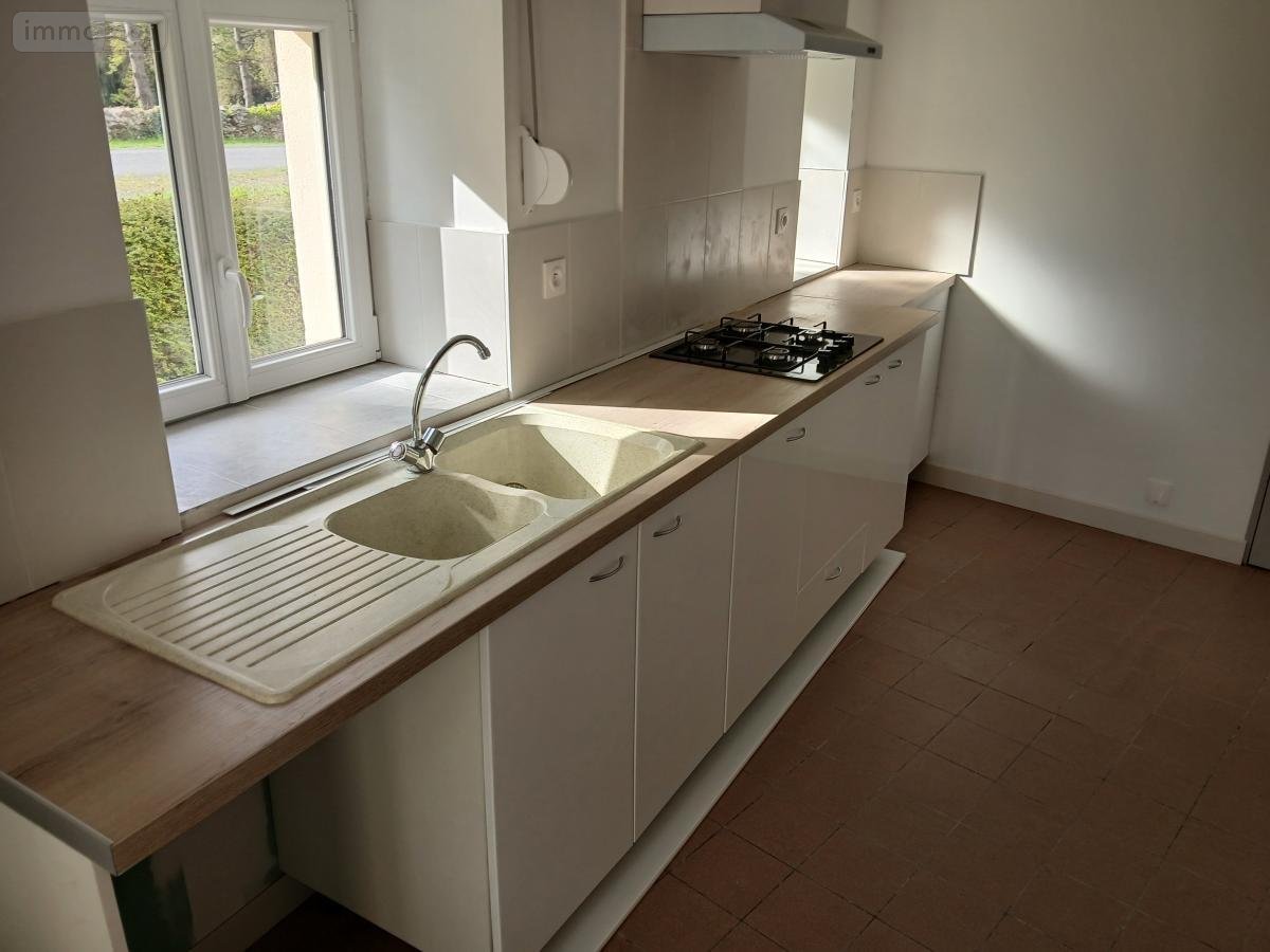 Maison mitoyenne d'environ 50 m2,séjour avec une cuisine équipé ( plaque et hotte), deux chambres, salle d'eau et WC, garage et coin jardin.