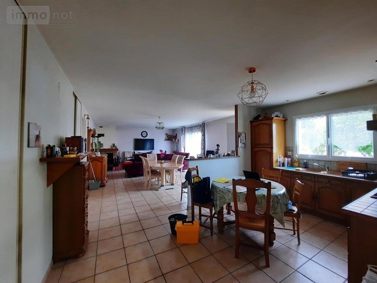 Maison de plain pied comprenant: une pièce de vie avec cheminée insert, une cuisine aménagée et équipée avec placard, un dégagement avec placard, une salle d'eau, un WC, 2 chambres dont une avec placard, un cellier et un garage avec faux grenier.
