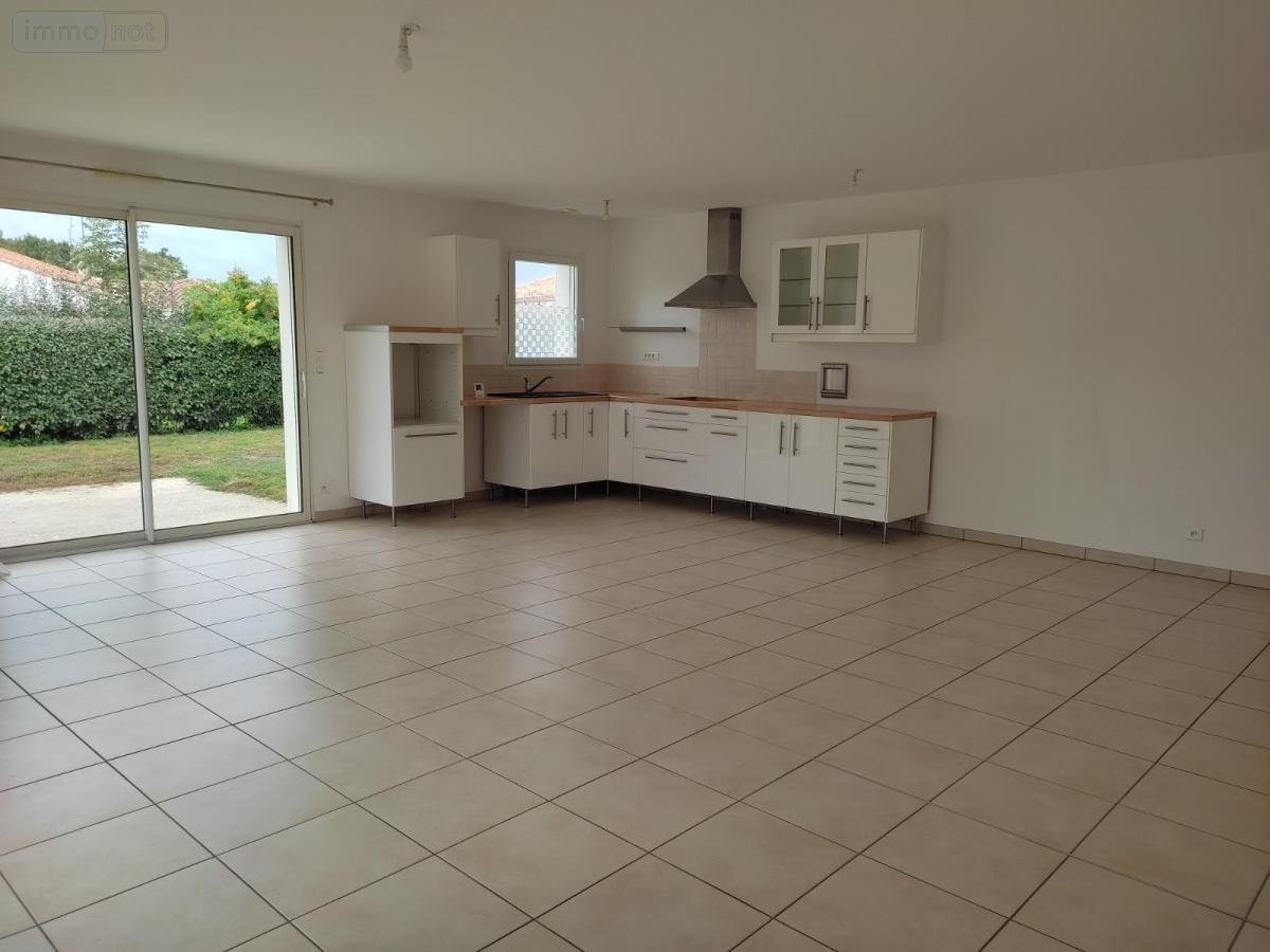 CHALLANS, maison de plain pied comprenant: Une entrée avec placard, cuisine aménagée et équipée (Hotte) ouvert sur un séjour avec accès à une terrasse et un jardin clos, 3 chambres, une salle de bain avec douche, toilette, garage attenant. Disponible avril