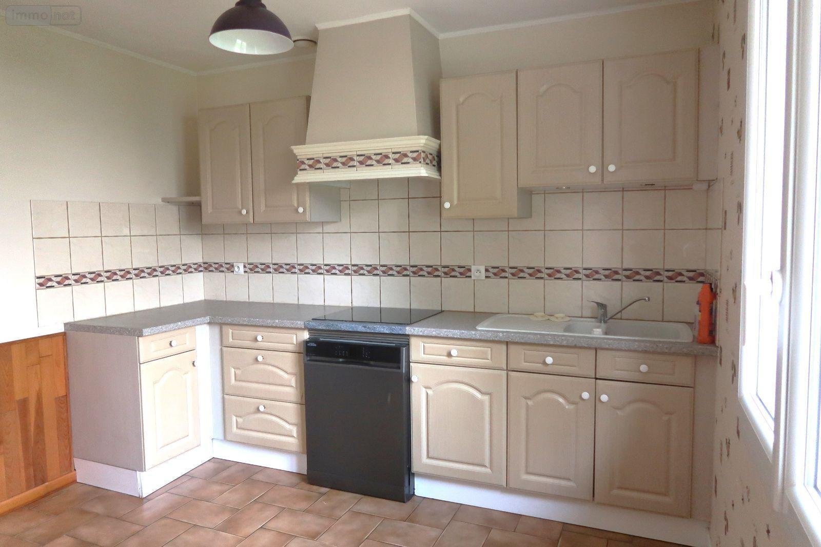 . entrée avec placard, salle à manger-salon avec insert (26m2), cuisine équipée, salle d'eau, wc, trois chambres ; garage.