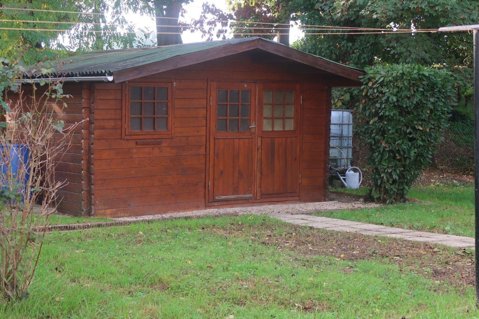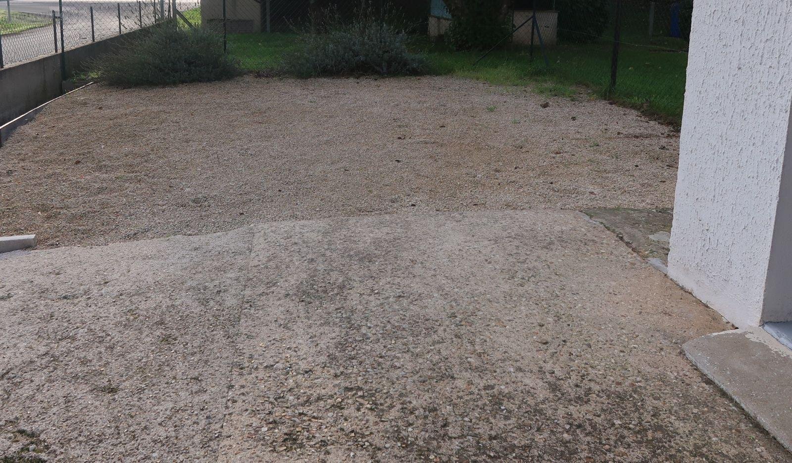Terrasse à l'arrière. Parkings à l'avant s/terrain de 780m2 avec chalet en bois.
