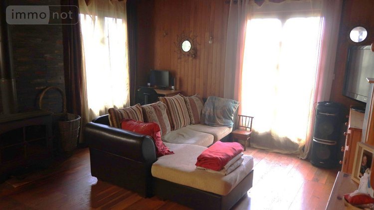 . en rez-de-chaussée : entrée dans cuisine aménagée ouverte sur pièce principale avec poêle, deux chambres (10,3 et 9,6m2), salle de bains, wc.