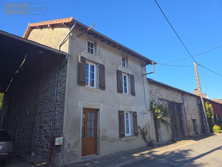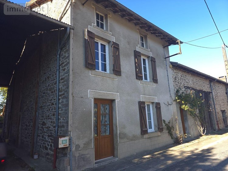 A VENDRE Haute-Vienne 87, AMBAZAC, Corps de ferme à rénover comprenant une maison d'habitation en pierre d'environ 101m2 avec au rez-de-chaussée une entrée, une cuisine, un séjour, une salle d'eau, un WC séparé, une chaufferie, à l'étage un dégagement, quatre chambres. Grenier aménageable. Grange attenante d'environ 86m2 au sol. Chauffage mixte (fioul et bois). Fenêtres en double vitrage PVC. Cave. Hangar. Beau terrain plat et sans vis à vis sur l'arrière!! Très beau potentiel!!