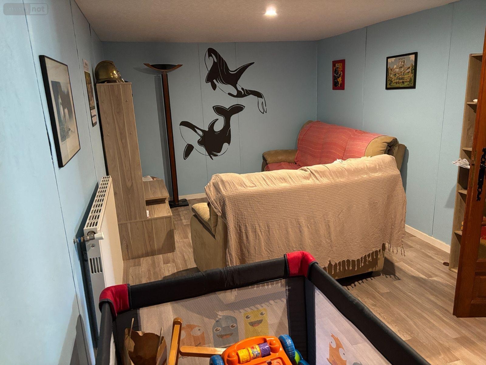 - premier étage : entrée, quatre chambres, cuisine, séjour, salle à manger, douche, toilettes, grenier aménageable.