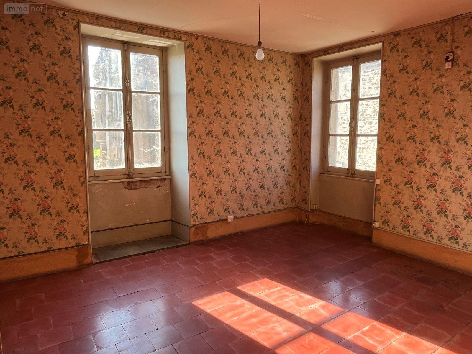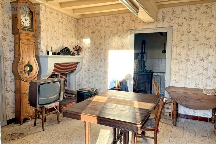 - Au rez-de-chaussée : entrée dans un séjour, une cuisine, une chambre, une pièce en enfilade. Depuis la cuisine : accès à une pièce palière desservant un WC, une salle d'eau.