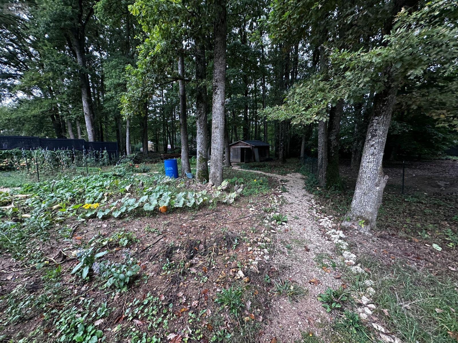 Un carport pour deux voitures, un atelier et une cuisine d'été, un abris de jardin et un poulailler.