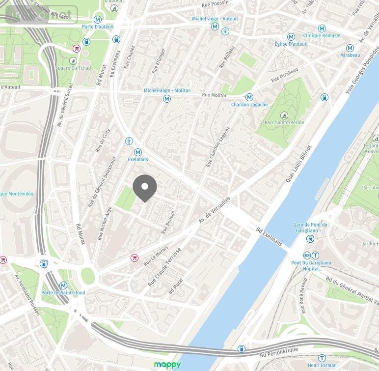 PARIS 16ème (Auteuil/Exelmans), dans voie privée arborée, APPARTEMENT de 2P de 59.19m² au 2ème étage avec ascenseur d'un immeuble moderne (1977) de bon standing en placage pierre (ravalement: 2011).
