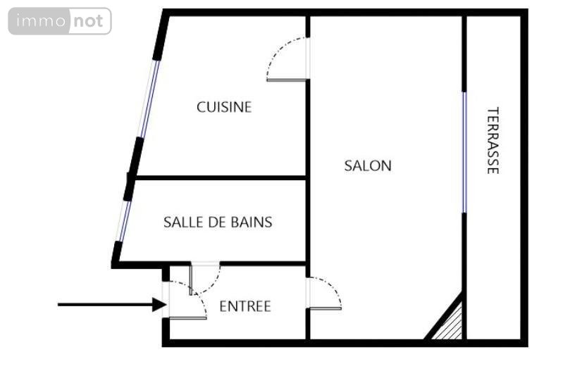 Entrée, Salon avec Porte vitrée sur Balcon, Cuisine séparée, Salle d'eau avec WC (fenêtre).