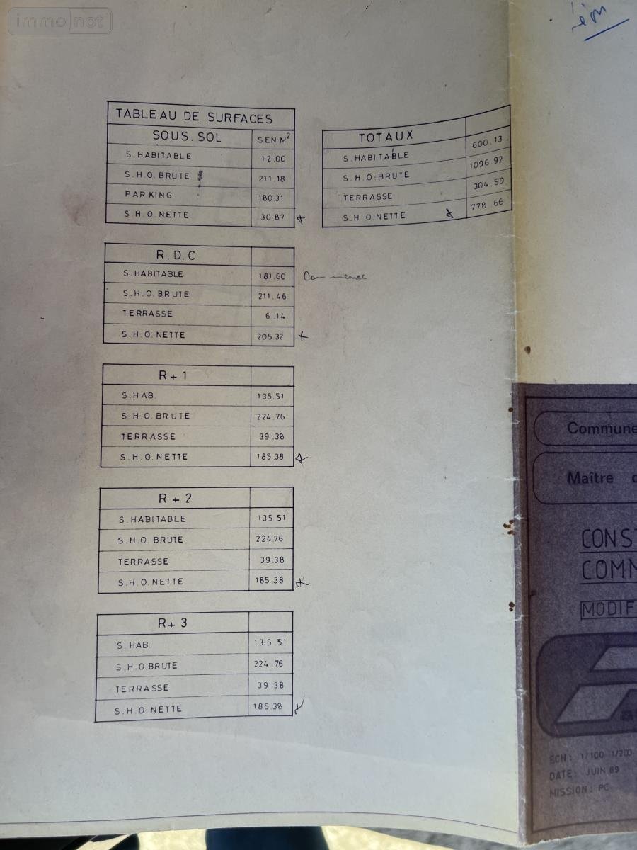 - 1 sous-sol de 180 m²,