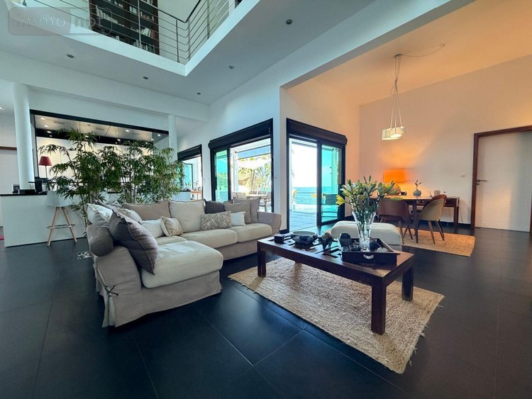 Sainte-Marie, centre, maison aison moderne de type F5 offrant une surface utile de 305m², implantée sur un terrain de 306m² et bénéficiant d'une vue imprenable sur l'océan. Le salon salle à manger de 32m² s'ouvre sur une varangue de 43m², favorisant une transition fluide vers l'extérieur. La cuisine équipée de 14m² se prolonge vers un espace piscine à débordement, prolongé par un deck en bois de 65m². Au rez-de-chaussée, une suite parentale de 15m² avec salle d'eau offre fonctionnalité et intimité. À l'étage (accessible par ascenseur), une seconde suite parentale de 33m² intègre dressing et salle d'eau, deux chambres de 15m² et 14m² s'ouvrent sur une terrasse de 21m² avec vue mer, une salle d'eau de 7m² et une mezzanine bureau de 39m² complètent ce niveau. Un roof top de 32m² en dernier étage permet de profiter pleinement du panorama à 360°. Les espaces sont optimisés avec un garage équipé d'un pont élévateur pour deux voitures, un sous-sol de 71m² intégrant cellier, chambre d'appoint et buanderie. L'ensemble implanté sur un terrain clos et arboré de 303 m²restations de qualité, matériaux haut de gamme et finitions soignées. L'ensemble est situé à proximité des commodités tout en préservant l'intimité. Prix : 1 365 000 EUR FAI à la charge du vendeur. Les informations sur les risques auxquels ce bien est exposé sont disponibles sur le site Géorisques: www.georisques.gouv.fr.