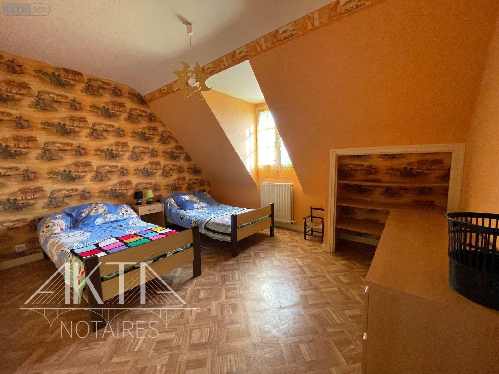 À l'étage : quatre chambres, salle de bains, bureau, WC.