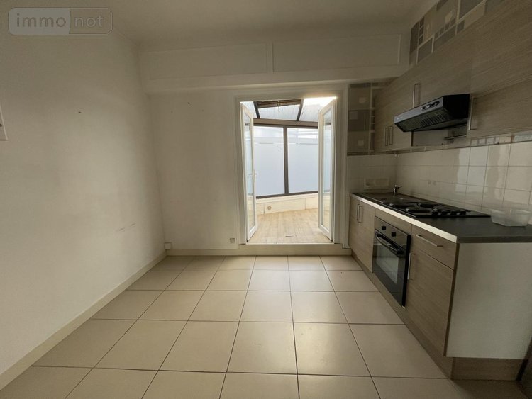 Appartement T4 de 77,38m² : entrée, cuisine ouverte sur véranda, salon-séjour, 3 chambres, salle de bains, WC. Terrasse.
