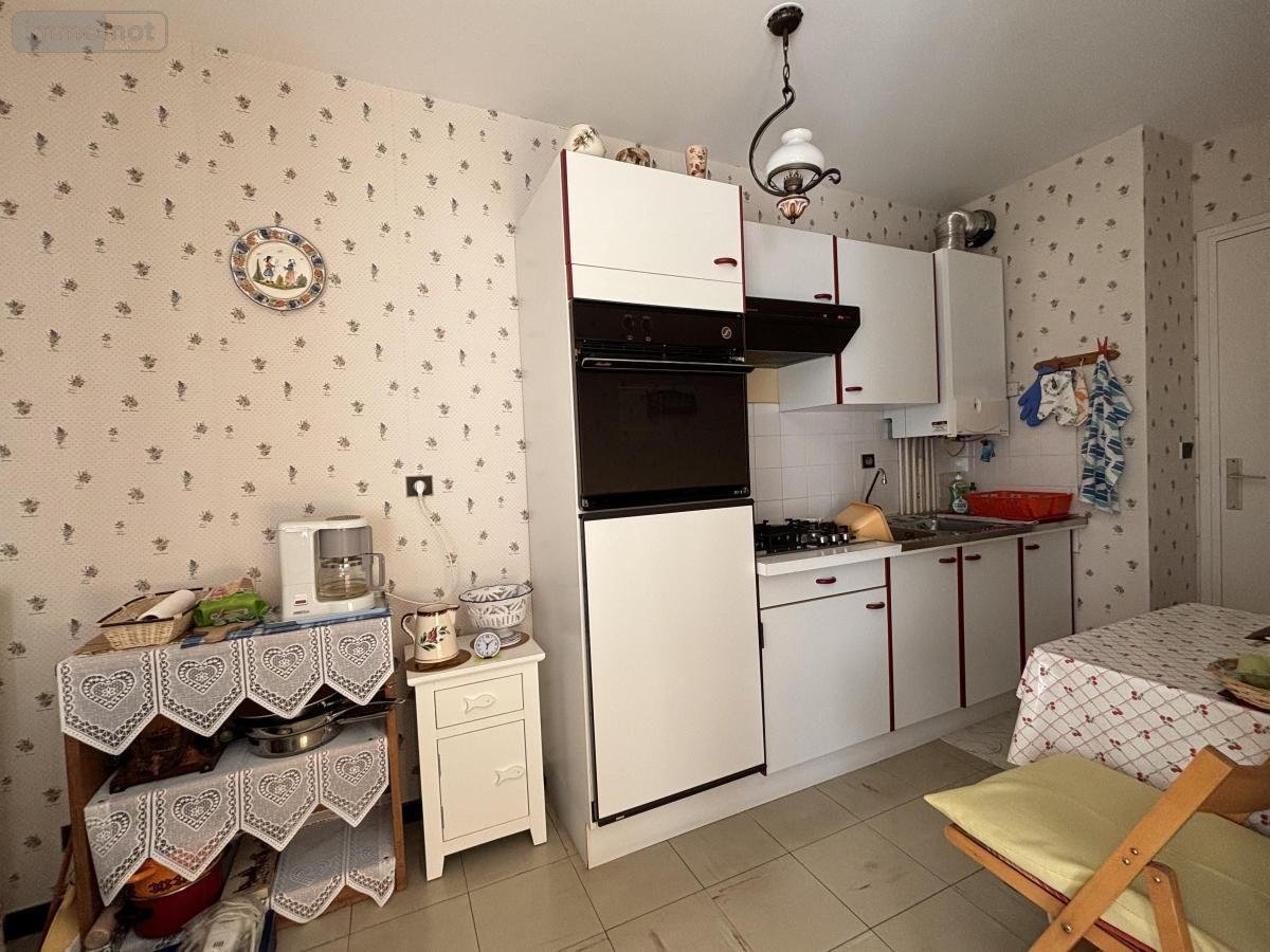 LARMOR PLAGE un appartement de 46 m² avec balcon sud et garage comprenant : entrée, penderie, cuisine aménagée, salle de séjour avec balcon, une chambre, salle de bains, W.C. et débarras.