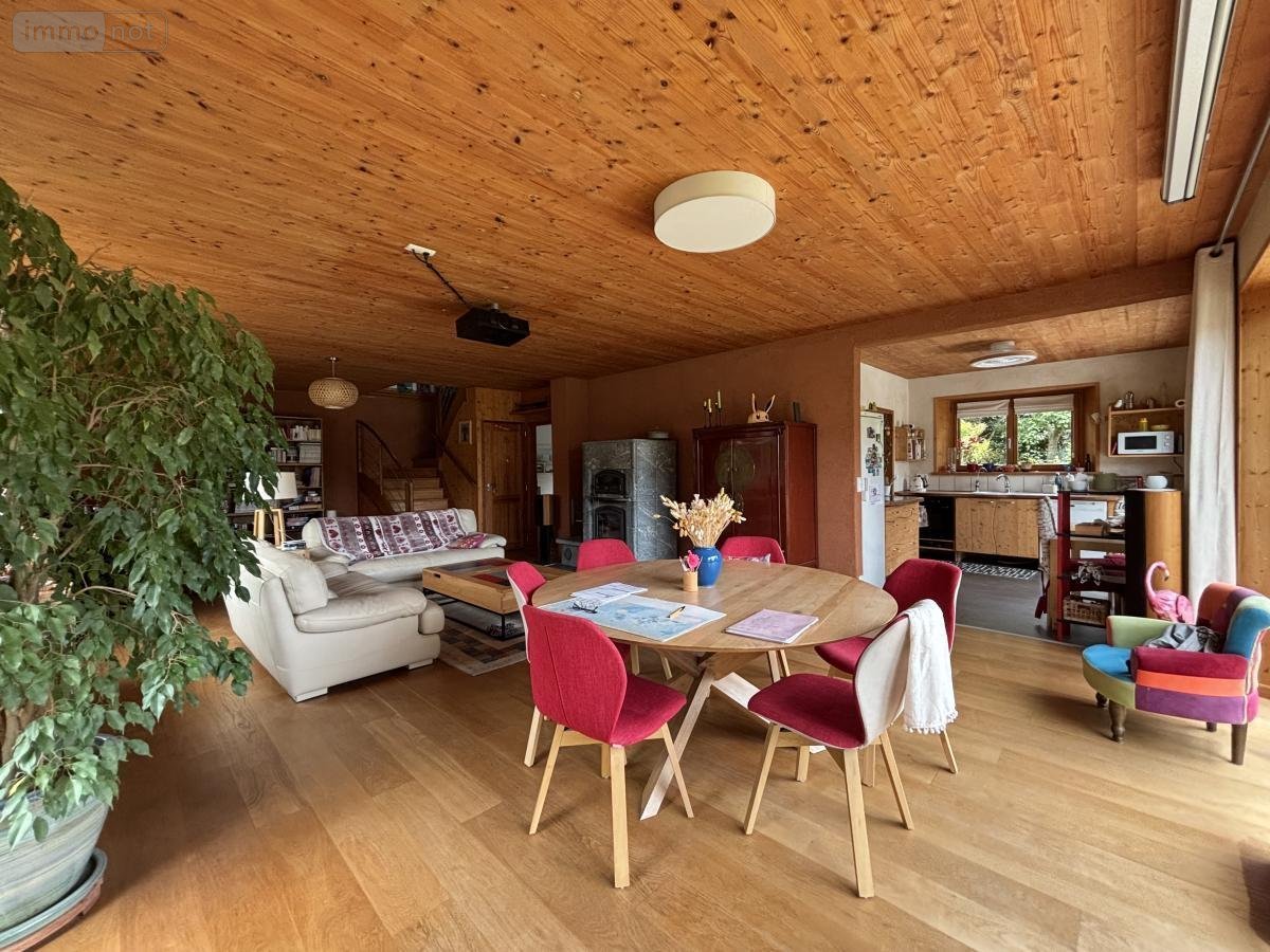 - Au rez-de-chaussée : entrée, grand séjour-salon (50 m²) avec poêle de masse, véranda (16 m²), cuisine ouverte, arrière cuisine, une chambre avec dressing et salle de bains avec douche, wc avec lave mains, buanderie.