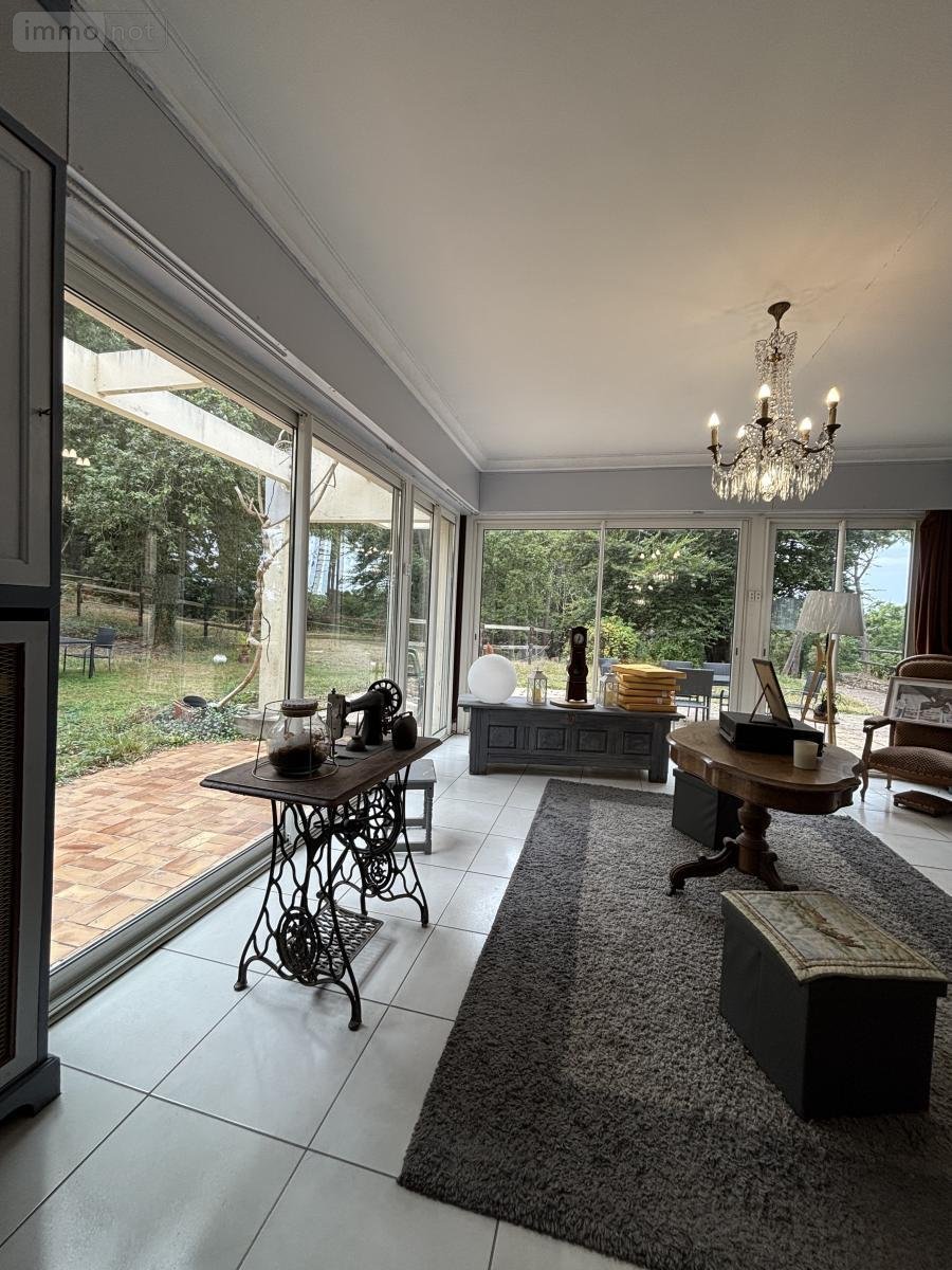 - Au rez-de-chaussée : hall d'entrée, grand séjour salon (58 m²) avec cheminée, cuisine aménagée et équipée, véranda, un bureau, 5 chambres, 2 salles d'eau, 2 WC,