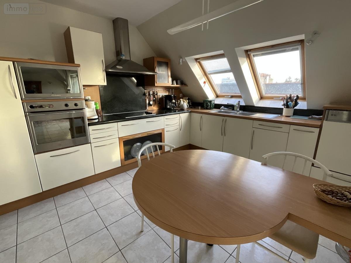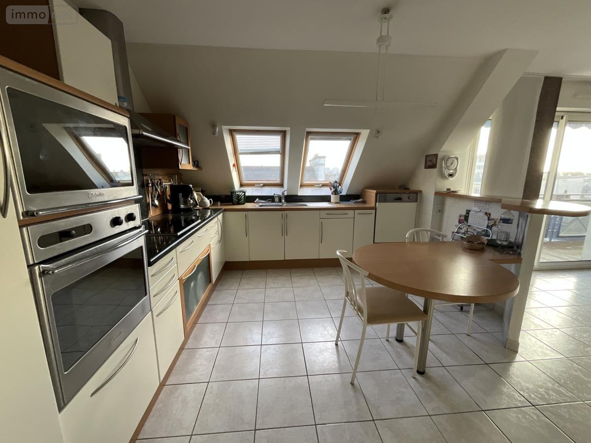 LORIENT - MERVILLE - Découvrez ce bel appartement de 136m² situé au 4e et dernier étage d'un immeuble avec ascenseur comprenant : une entrée, un salon-séjour donnant sur balcon, cuisine aménagée et équipée avec cellier/buanderie attenant, 3 chambres dont une avec salle d'eau avec WC et sanibroyeur privative, dressing, salle de bains, WC avec lave-mains.