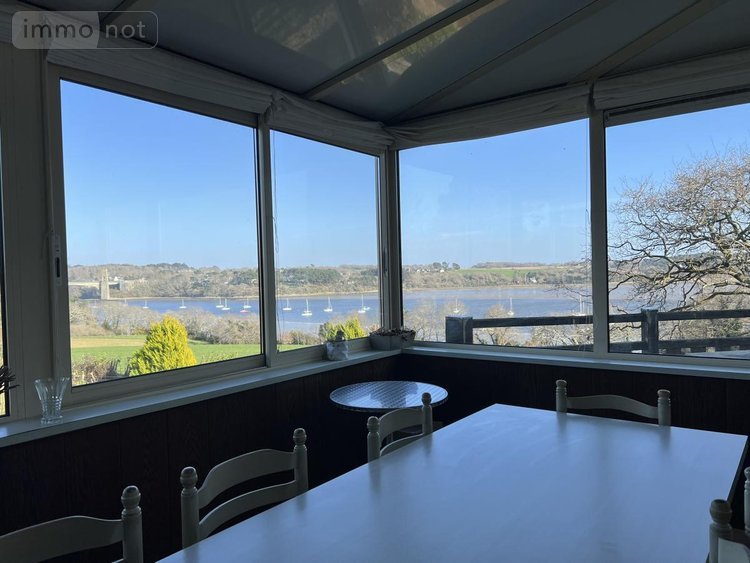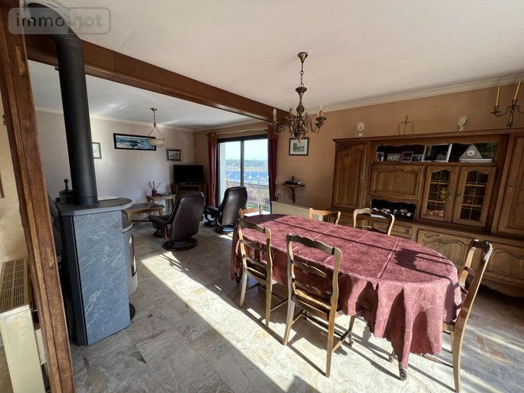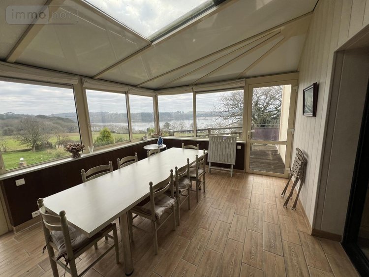LANESTER quartier de saint guenael vue sur le blavet pour cette maison de type 6 de 1989 comprenant au rdc : un hall d'entrée, une cuisine ouverte sur séjour salon avec poêle à bois, une véranda, une chambre, sdb, wc. A l'étage : trois chambres sur balcon, sdb, wc.