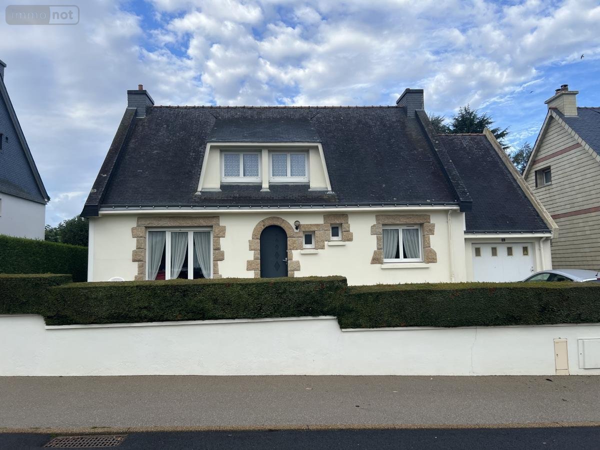 CAUDAN au bourg en impasse maison néo-bretonne de type 7 comprenant au rdc : un hall d'entrée, une cuisine, un séjour salon avec cheminée, une chambre, une salle d'eau, wc, une buanderie. A l'étage : trois chambres, une salle d'eau, wc, un grenier. Attenant un garage avec une pièce au-dessus. L'ensemble sur 544 m² de terrain.