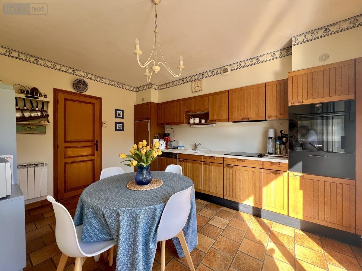 Idéalement située dans un environnement recherché, à proximité du bourg, cette maison de 144m2, non mitoyenne et de bonne facture, est discrètement implantée en retrait de la rue et préservée de tout vis-à-vis, bénéficie d'une exposition plein Sud qui souligne sa luminosité naturelle.