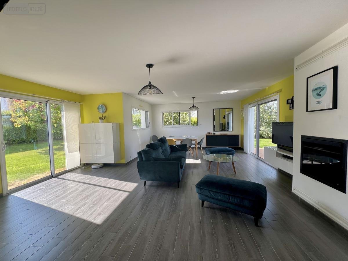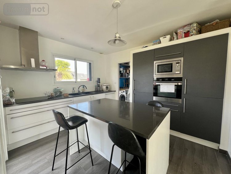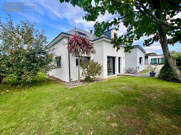 RIANTEC, Au calme et en retrait de la rue. Maison non mitoyenne de 2012, avec vie totale au RDC et exposée SUD-OUEST. Elle se compose d'une pièce de vis lumineuse avec chemiée et insert, cuisine A+E ouverte avec arrière-cuisine, suite parentale avec dressing et SDD, wc, à l'étage, Palier, 3 ch., SDB et WC. Garage, abri de jardin et stationnement. Beau jardin paysagé.