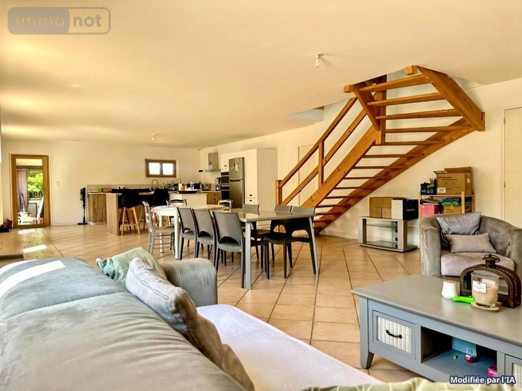 La maison se compose d'une entrée dans un sas véranda, donnant sur une grande pièce de vie d'environ 80m² avec la cuisine aménagée et équipée, salle/salon, suite parentale (chambre, salle d'eau), wc, chaufferie/buanderie; Etage: grande mezzanine desservant 3 chambres, wc, salle de bain. Idéal pour accueillir votre famille et vos animaux..