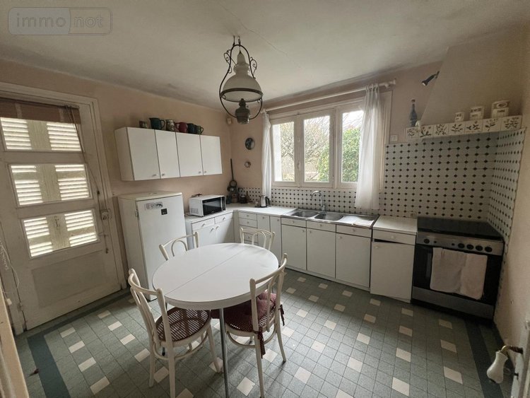 HENNEBONT quartier de la gare maison de 1956 comprenant au rdc : une cuisine, un séjour salon avec une cheminée, un cellier, wc lvm. A l'étage : 4 chambres, une salle de bains. Un grenier aménageable au-dessus. Attenant un garage. L'ensemble sur 333 M² de terrain. (prévoir travaux).
