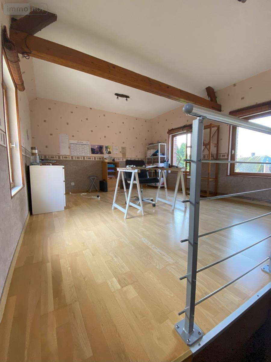 - à l'étage , qui est composé en deux espaces distincts : un espace bureau et un espace comprenant un palier en parquet chêne desservant trois chambres avec poutres apparentes,
