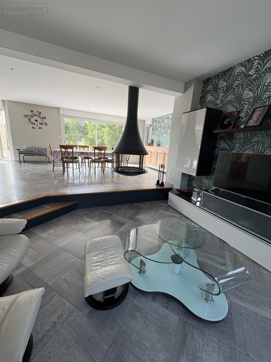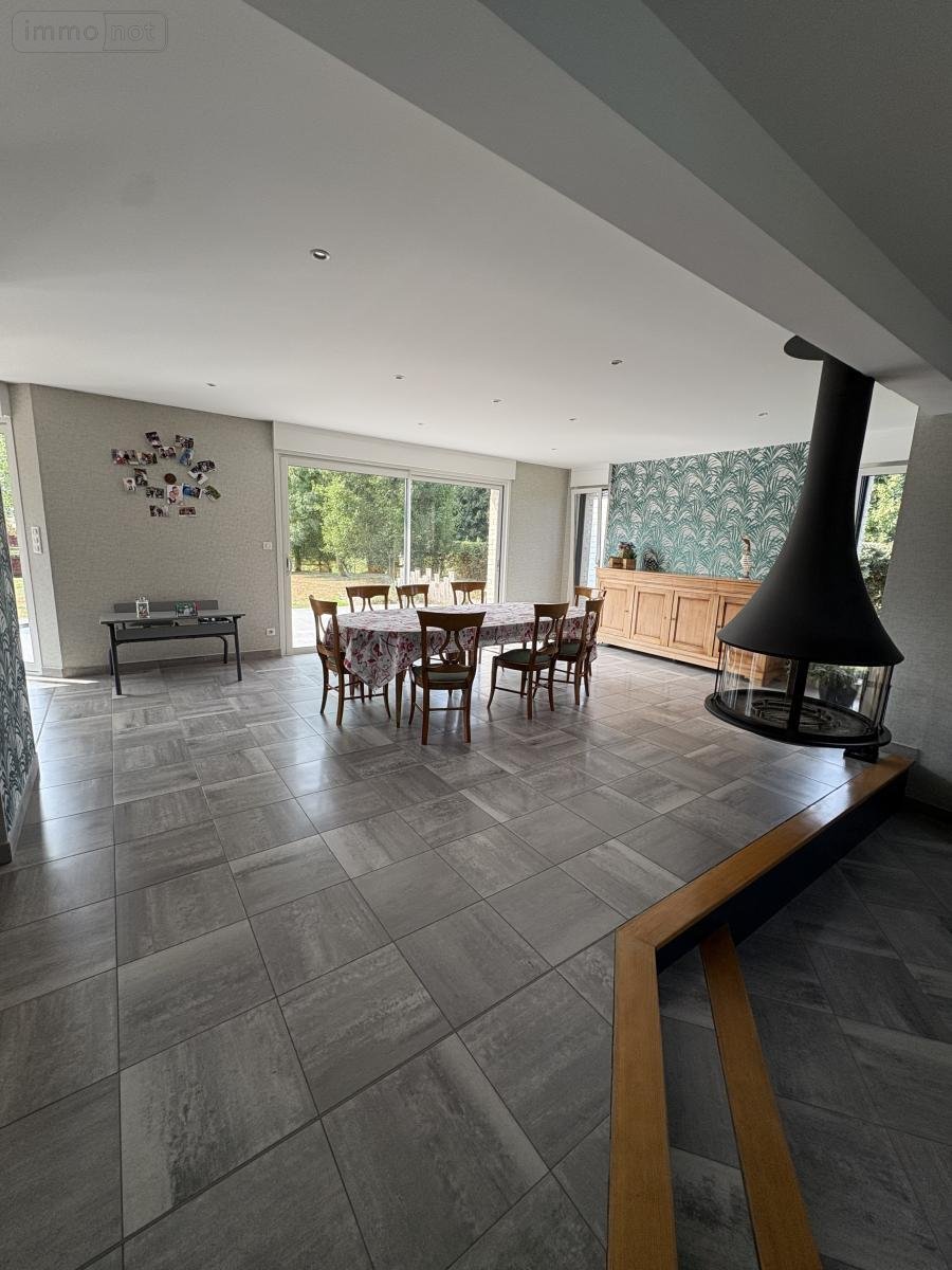 - Au rez-de-chaussée : un vaste hall d'entrée, un charmant salon / séjour de 50 m² (avec joli insert suspendu au feu de bois) ouvert sur cuisine équipée, un cellier, WC séparé, une belle salle de bain avec douche italienne, une chambre avec dressing attenant, une buanderie,