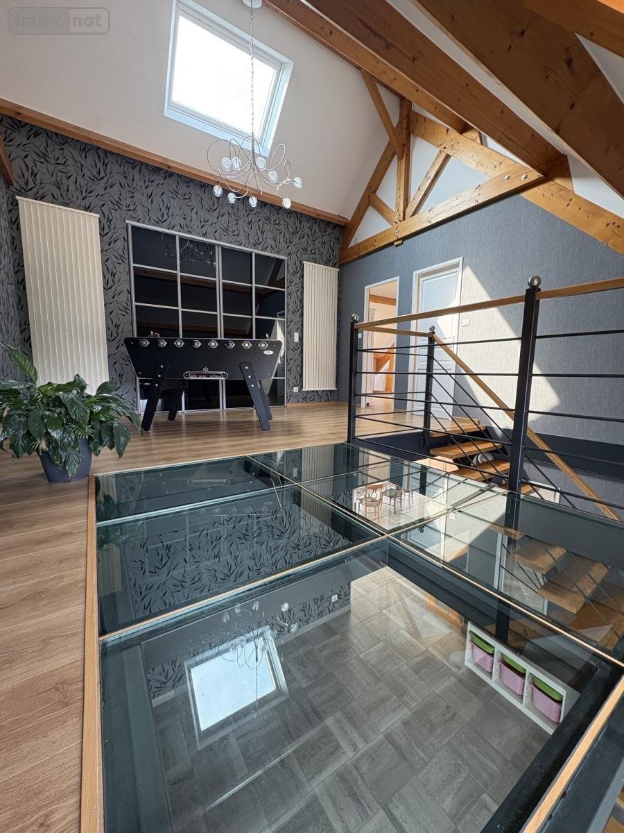 - Au premier étage : un grand palier avec verrière au sol, un dressing, trois chambres, une salle de bain (baignoire et douche), un WC séparé, un bureau,