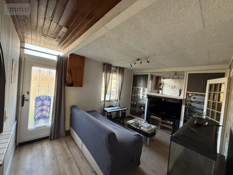 D'une superficie de 51 m² environ, cette maison offre au rez-de-chaussée, une cuisine ouverte meublée et équipée sur un séjour parqueté. Cheminée d'ornement et rangements.