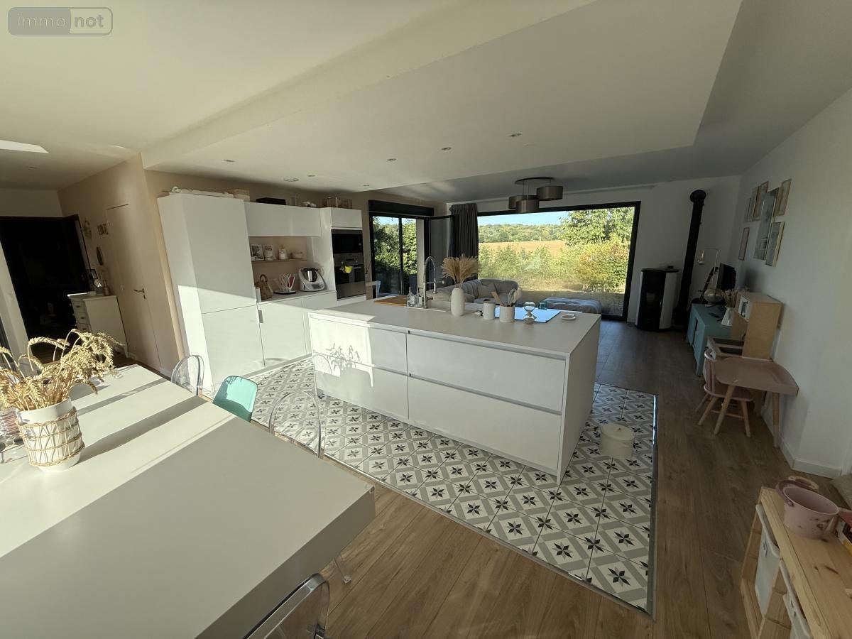 Un hall d'entrée  avec vestiaire desservant une pièce de vie de 44 m² environ avec cuisine aménagée et équipée avec ilot central, un dégagement vers l'espace nuit offrant trois chambres dont une avec dressing, salle d'eau attenante avec douche et vasque, un WC indépendant et un local technique.