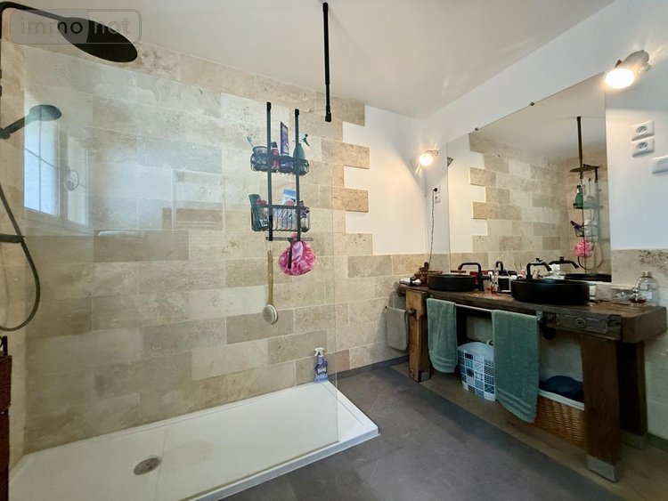 Un petit dégagement dessert un cellier/lingerie, un wc indépendant, deux chambres avec vue sur le parc et une belle salle d'eau avec douche à l'italienne et meuble double vasque.